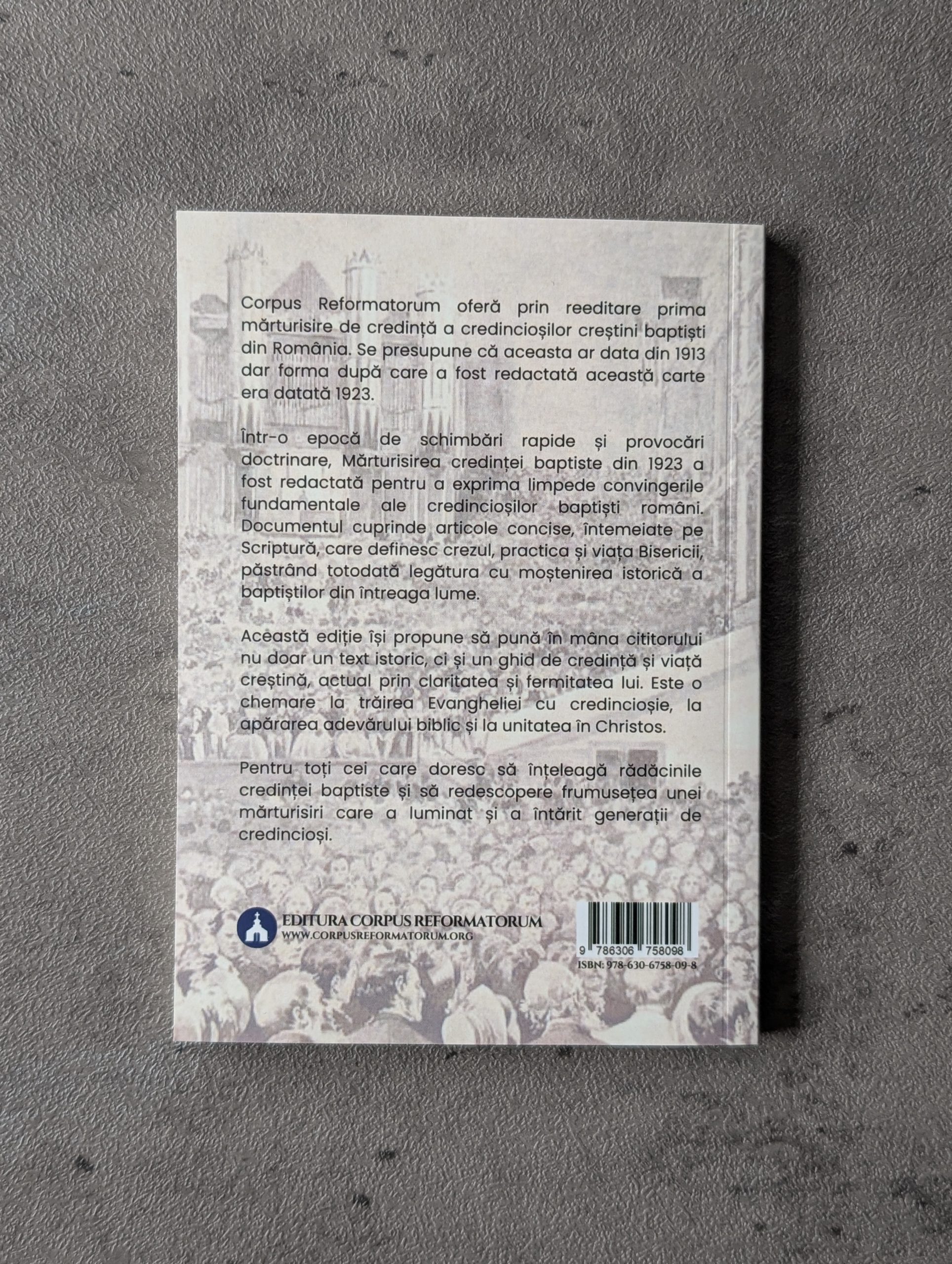 Corpus Reformatorum oferă prin reeditare prima mărturisire de credință a credincioșilor creștini baptiști din România. Se presupune că aceasta ar data din 1913 dar forma după care a fost redactată această carte era datată 1923.