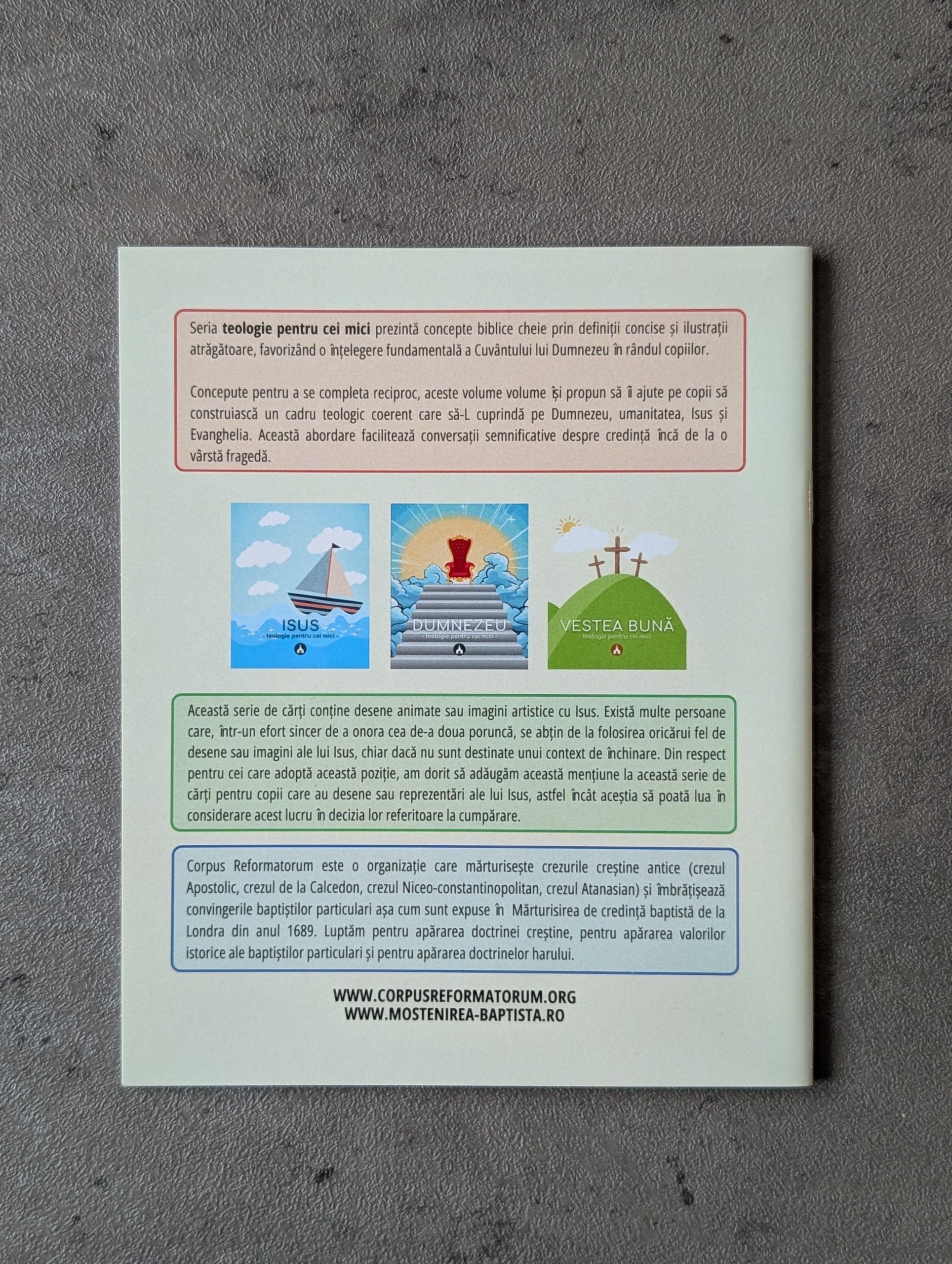 Seria teologie pentru cei mici prezintă concepte biblice cheie prin definiții concise și ilustrații atrăgătoare, favorizând o înțelegere fundamentală a Cuvântului lui Dumnezeu în rândul copiilor. Concepute pentru a se completa reciproc, aceste volume volume își propun să îi ajute pe copii să construiască un cadru teologic coerent care să-L cuprindă pe Dumnezeu, creația, umanitatea, Isus și Evanghelia. Această abordare facilitează conversații semnificative despre credință încă de la o vârstă fragedă.